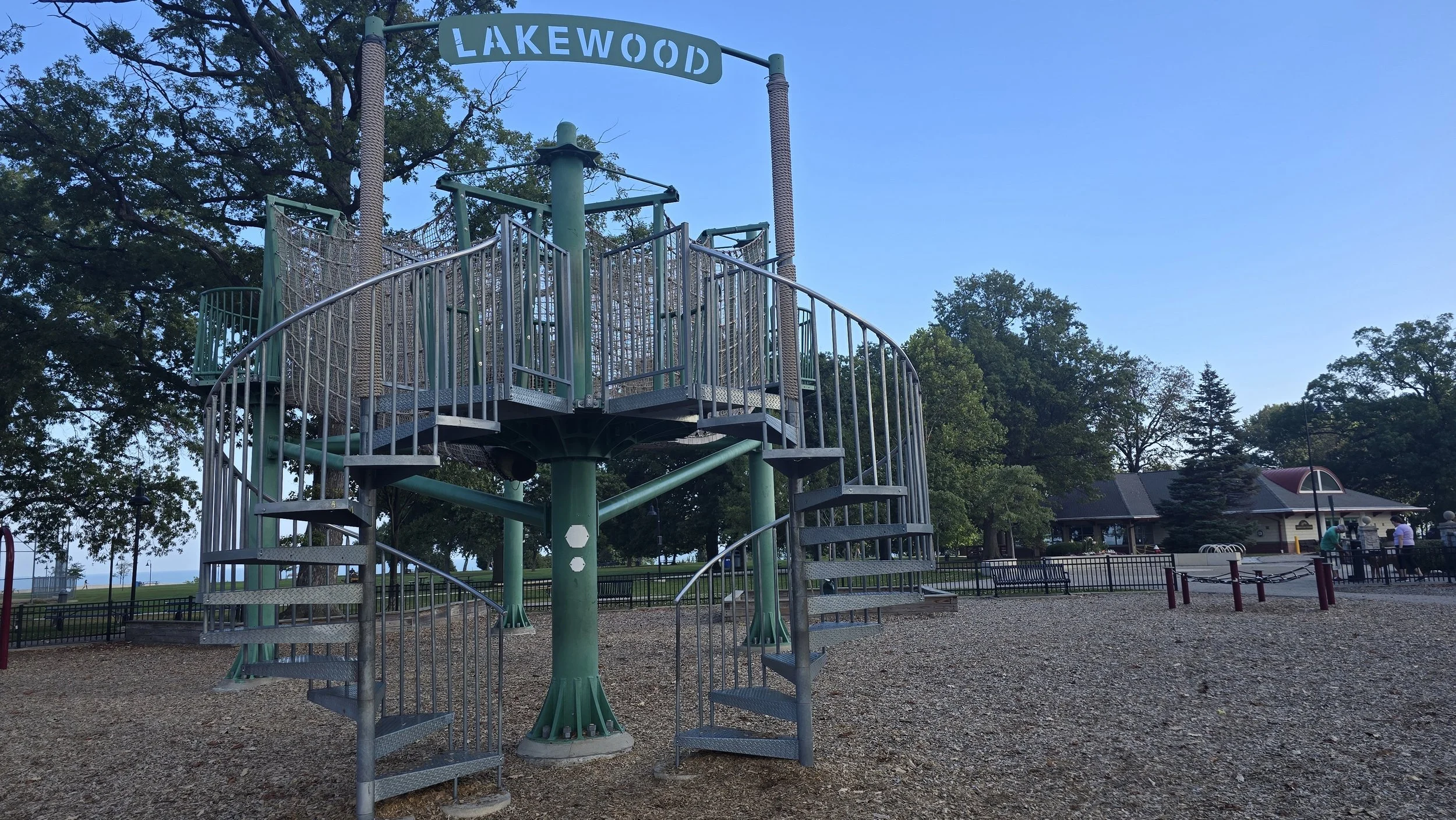 A great nature-first playground to blend with the lake vibe. All of the climbing areas are fun, plus the zipline, and water area. Definitely a great place to picnic or you can go to the Noshery for snacks.